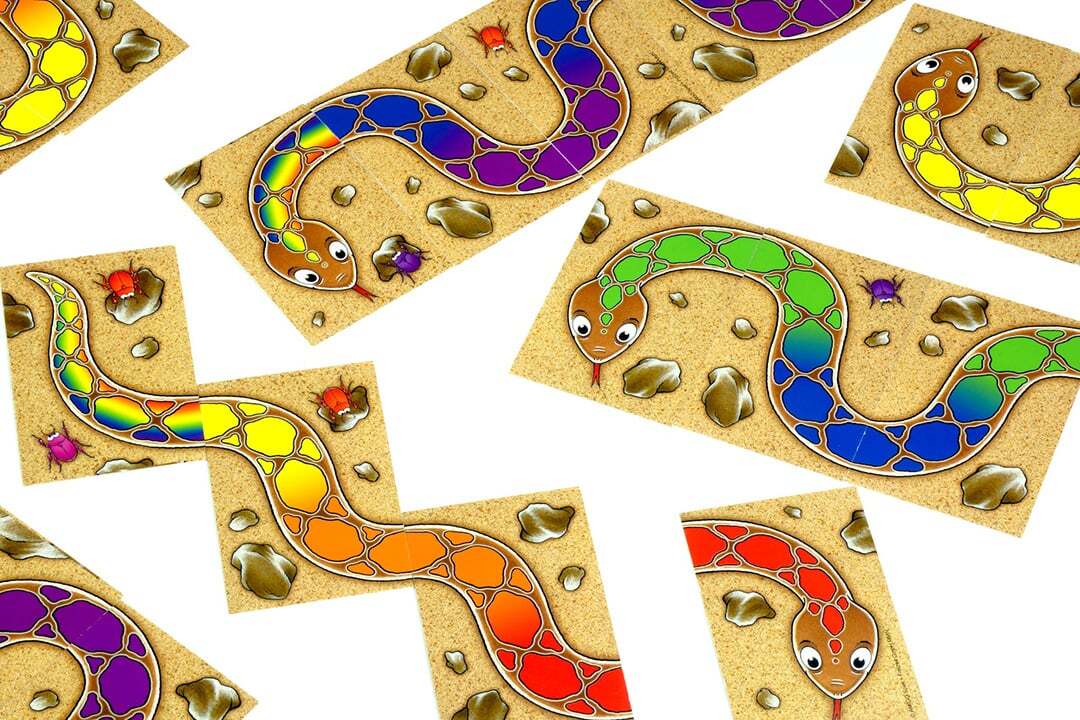 頭と胴体としっぽをつないで一匹のへびを完成させた人が、そのへびのカードを全部もらうことができます。