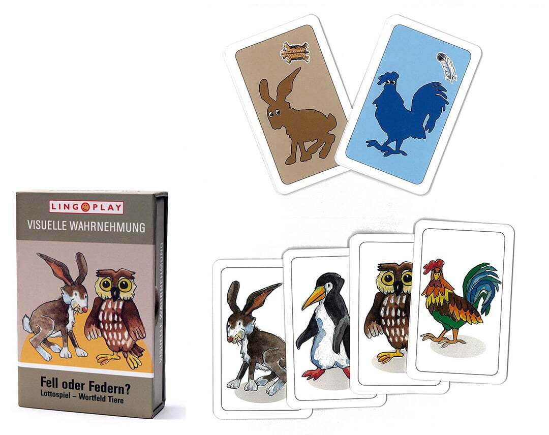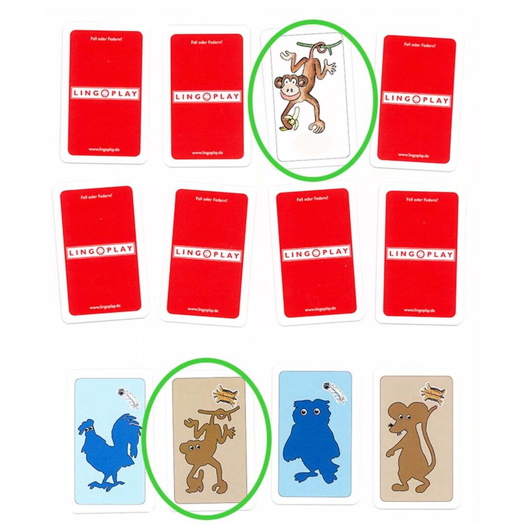 絵合わせのロットゲームです。影カードとカラフルな動物カードがペアになります。