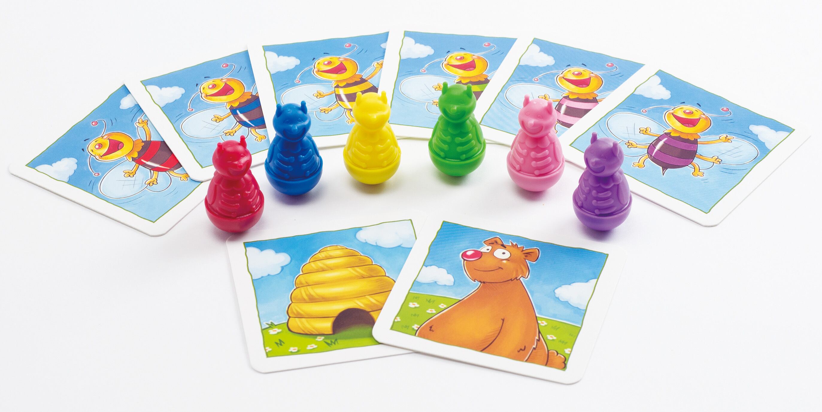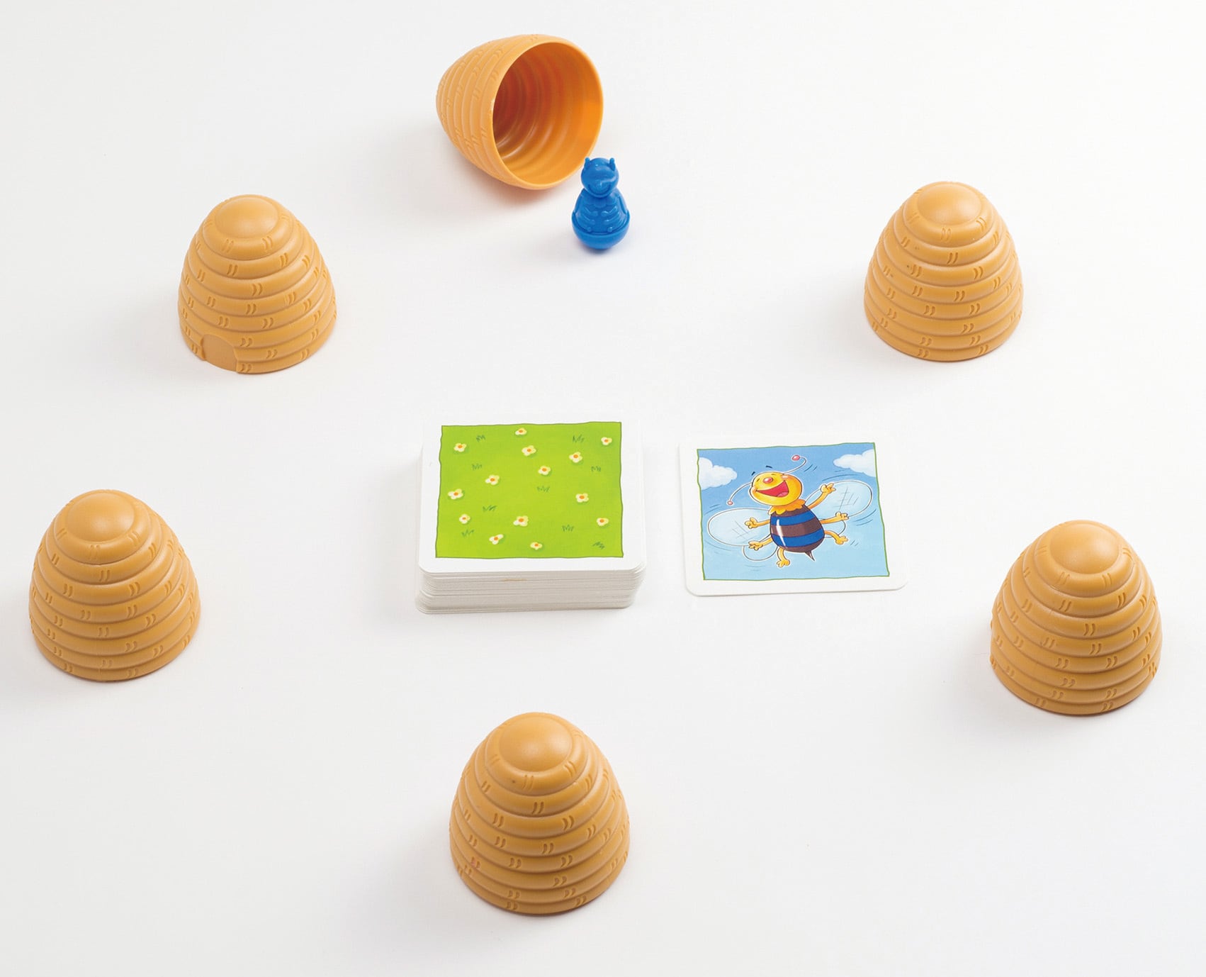 プレイヤーはハチの色を覚えて、めくったカードと同じ色にハチの隠れたカップを開けます。